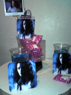 で、2枚目の写真は彼女と一緒に注文したGOHSTドリンク+コースター。ブルーハワイです。舌が青い青い。